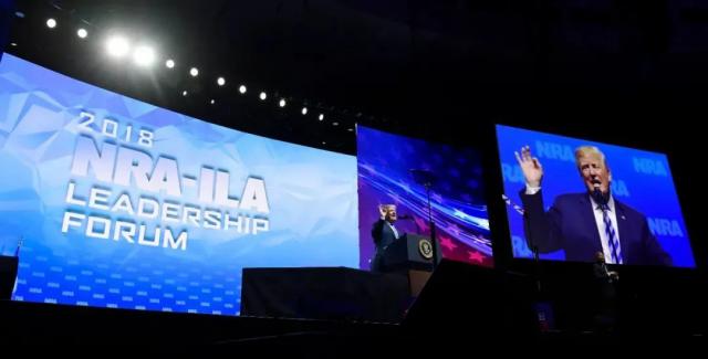 2018 年 5 月 4 日,美国总统特朗普在得克萨斯州达拉斯市举行的美国全国步枪协会年会上讲话。特朗普在年会上重申,支持公民拥有枪支的权利。 新华社 / 美联