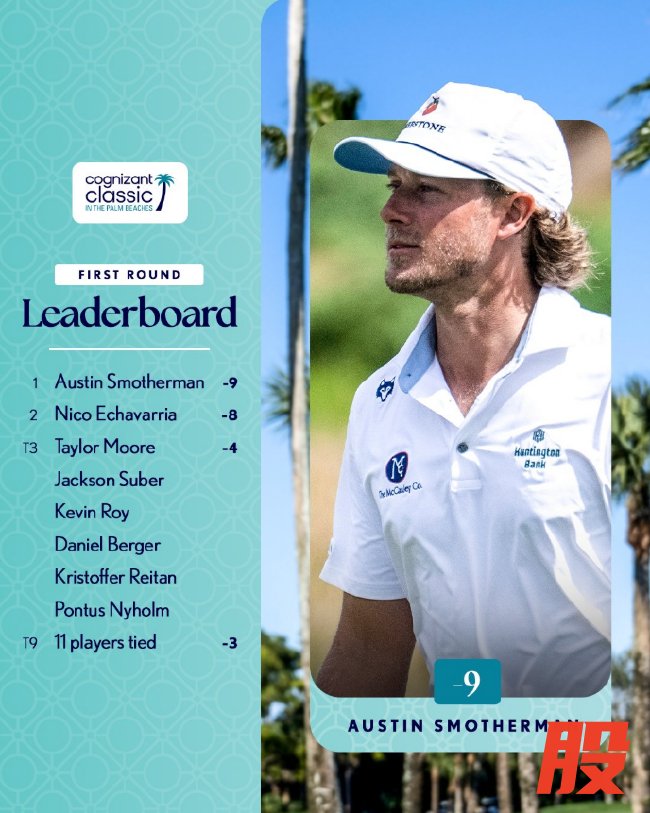 北京时间2月27日,美国选手奥斯汀-斯莫瑟曼(Austin Smotherman)星期四上午在PGA全国度假村打出62杆,低于标准杆9杆,取得高知特精英赛首轮领先。